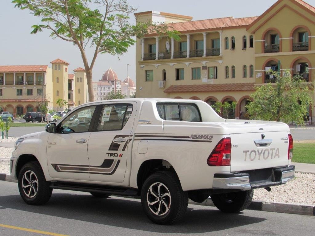 STANDARD SPECIFICATION: POWER/TILT STEERING + STEERING WHEEL – URETHANE W/ AUDIO+BT CONTROLS WITH SILVER GARNISH, AC/HEATER – WITH (AUTO)+REAR DUCT / WITH, POWER WINDOW, POWER DOOR LOCK, KEYLESS ENTRY, METER ILLUMINATION CONTROL, AUDIO – AM/FM/ NAVIGATION/DVD/USB/AUX/BT/4 SPK/ SHORT POLE ANTENNA, INSTRUMENT PANEL W/ SILVER GARNISH, MULTI INFO DISPLAY W/ TFT TYPE, CENTRE ARMREST W/ CUP HOLDER, TACHOMETER, DIGITAL CLOCK, INNER REAR VIEW MIRROR DAY/NIGHT, SUN VISOR D(W/HOLDER)+P(W/MIRROR & LID), CONSOLE BOX W/ LID, SEAT MATERIAL SUPERIOR FABRIC, Fr. SEAT BELT – 3PELRx2 W/PT & FL, VERTICAL SEAT ADJUSTER WITH DRIVER, Rr. SEAT BELT 3PELRx2+2PNRx1, BUMPER – FRONT COLOUR KEYED / REAR STEEL STEP CHROME, FRONT+REAR MUD GUARDS, GREEN LAMINATED W/TOP SHADE WINDSHIELD GLASS, SIDE STRIPE, HIGH MOUNT STOP LAMP, OUTER MIRROR – CHROME PLATED WITH TURN SIGNAL + COLOUR KEYED + POWER, CHROME PLATED DOOR HANDLES, SIDE STEP WITH OE, ADJ. INTERMITTENT: MIST WIPER Fr, HEADLAMP LED PROJECTOR, RADIATOR GRILLE CHROME+SILVER, ECO/POWER MODE, REAR WINDOW SLIDE TYPE, AUTO LIGHT CONTROL SYSTEM W/ FOLLOW ME HOME, BACK VIEW CAMERA, SHIFT LEVER KNOB LEATHER W/ SILVER ACCENTS, COOL GLOVE BOX, DOOR COURTESY LAMP W/ REFLECTOR, CRUISE CONTROL, FRONT FOG LAMP, REAR FOG LAMP, TYRE PRESSURE MONITORING SYSTEM, FLOOR MAT, ABS+EBD+BA VSC, HILL ASSIST CONTROL + TRAILER SWAY CONTROL, AUTO TRACTION CONTROL, AIR BAG – D+P+KNEE (DRIVER), TRD PACKAGE TRD FRONT BUMPER SPOILER/> DAYTIME RUNNING LIGHT/ SPORTS BAR/ BED LINER UNDER RAIL A-DECK/ TRD WHEEL 17 INCHES+CENTER CAP